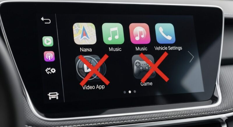 • 動画再生アプリ: YouTube、Netflix、Amazon Prime Videoなど、映像を視聴するアプリは、運転中の安全を著しく妨げるため、標準状態では利用できません。これは最も厳格に制限されているカテゴリです。
