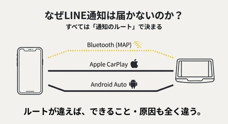 • カーナビにLINE通知が出る仕組みの違い