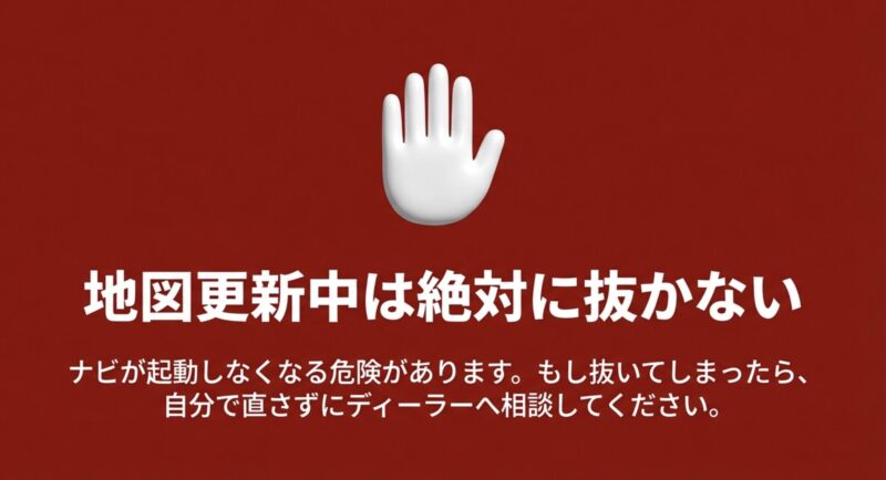 地図更新中にSDカードを抜くのは、SDカード関連の中でも最上位クラスの危険行為です。