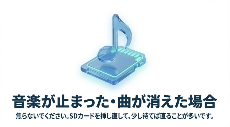 | 音楽が止まる・曲一覧が消える | 別カードにコピーして移す | 同じSDで復旧(後述のエラーチェック) |
