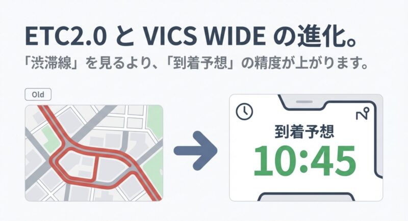 • VICS WIDEやETC2.0で旅行時間情報が増えると、到着予想の納得感が上がりやすい