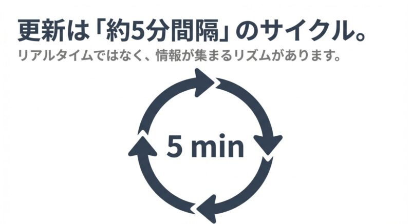 ただ、この「5分」を“スマホのライブ更新”みたいに受け取ると、ほぼ確実にモヤっとします。