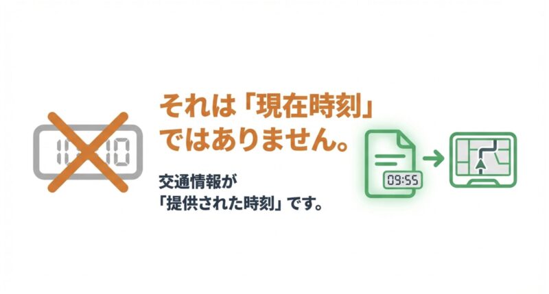 VICS時間のズレは、故障ではなく「いつの情報か」を示す設計として出ることがあります。