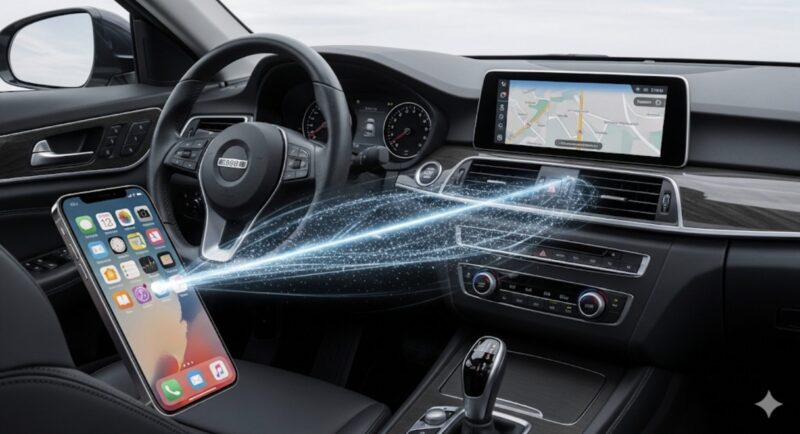 ワイヤレスでCarPlayを利用する場合、最初の認証(ペアリング)こそBluetooth通信を使用しますが、その後の地図データや音楽ストリーミングといった大容量のデータ通信は、より高速で安定したWi-Fiを介して行われています。