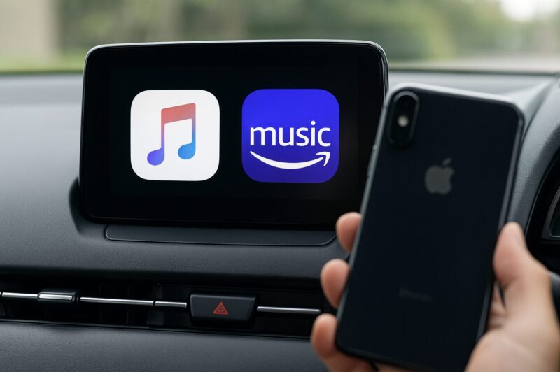 CarPlay対応アプリの中でも、特にiPhoneユーザーにとって選択肢となりやすいのが、Apple MusicとAmazon Musicです。