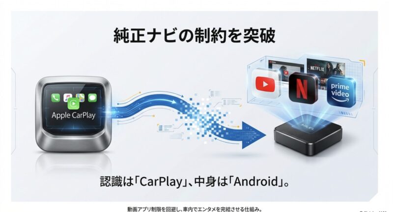 CarPlay自体は安全設計で動画アプリが制限されるので、動画をやりたいならAI BOX側で完結させる、という考え方になります。