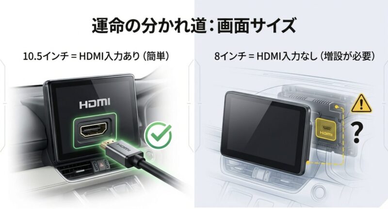 • 8インチと10.5インチの違いとHDMI対策が整理できる