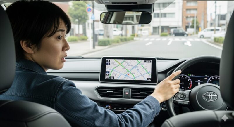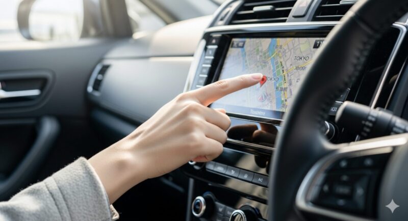 地図画面を最大限まで拡大し、目的地のピンが道路から外れていないか確認します。もしズレている場合は、施設の入口に近い「公道上」に手動でピンを打ち直してみてください。また、施設名で検索できない場合は、「住所検索」や「電話番号検索」で試すのも有効な手段です。 - 車両を完全に停車させ、パーキングブレーキをかける