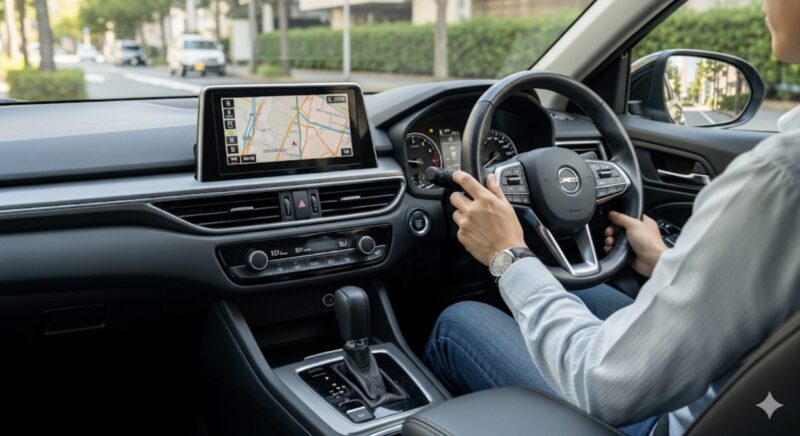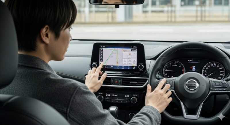 日産車の純正ナビで「目的地を設定したいのに、住所入力や施設名検索のボタンが押せない」「メニューがグレーアウトしている」という場合、その原因のほとんどはドライバーの安全を守るための操作制限機能が働いていることです。