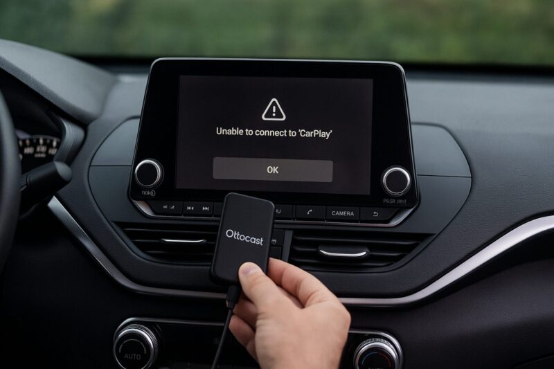 電源は入るものの、カーナビがOttocastを認識しない、あるいはCarPlay/Android Autoの画面に切り替わらない場合、ソフトウェアの一時的な不具合や設定ミスが考えられます。