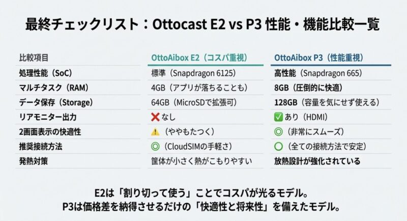 Ottocast E2とP3の比較と違い:性能の徹底分析