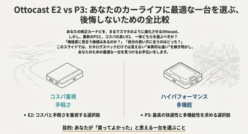 ここまでOttocastのE2とP3を比較してきましたが、最終的にどちらを選ぶべきか、私の結論をお伝えします。